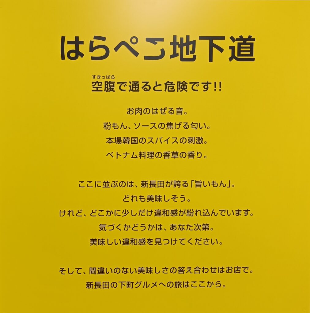 3/5~25 はらぺこ地下道 2026-03-05 最終更新日時 : 2026-03-05 管理人 地下鉄海岸線横の地下道が、通るだけで食欲が出てくる地下道に変身してるみたい。3/5~25はキャンペーン期間で、その食欲を満たしてくれるものが当たるみたい!まずは地下道に足を運んでみよう。そして誘惑に負けて店へ... 情報元:神戸市営地下鉄海岸線地下通路主催:神戸市営地下鉄海岸線新長田駅、シタマチコウベ