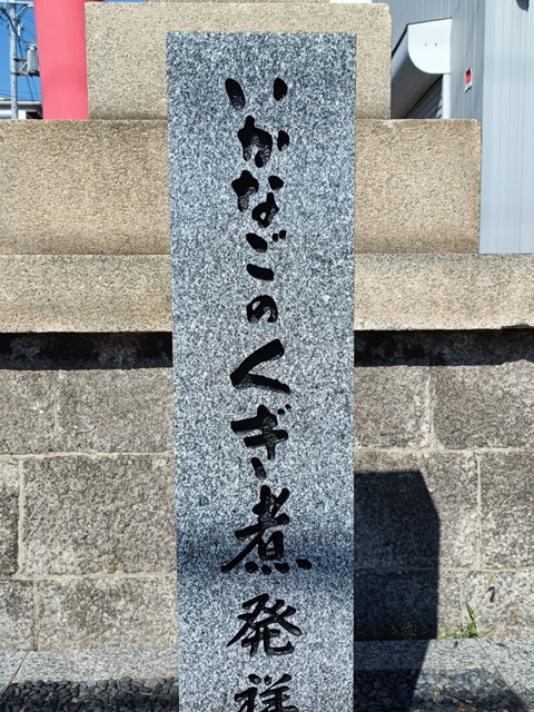 新長田駅からは少し離れるが、長田漁港のすぐ近くにある駒林神社の鳥居前には「いかなごのくぎ煮発祥地」と書かれた石碑が立っている。