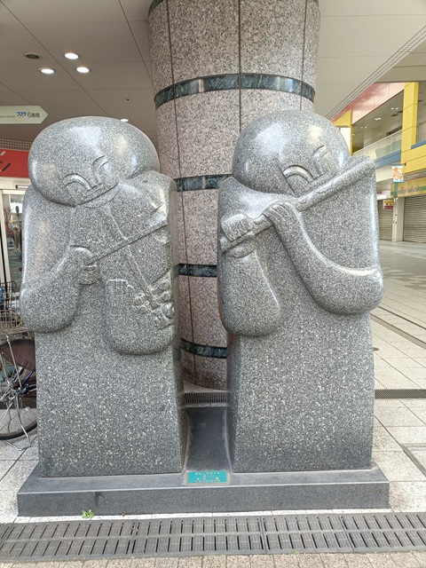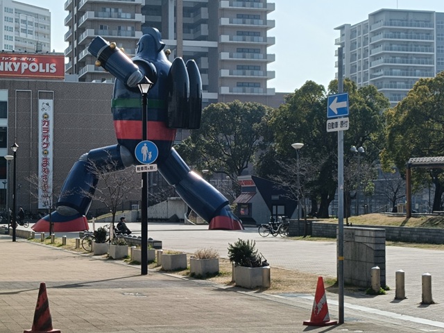大正筋商店街と国道2号線との交差点付近にある抽象像。