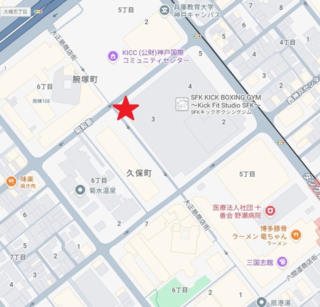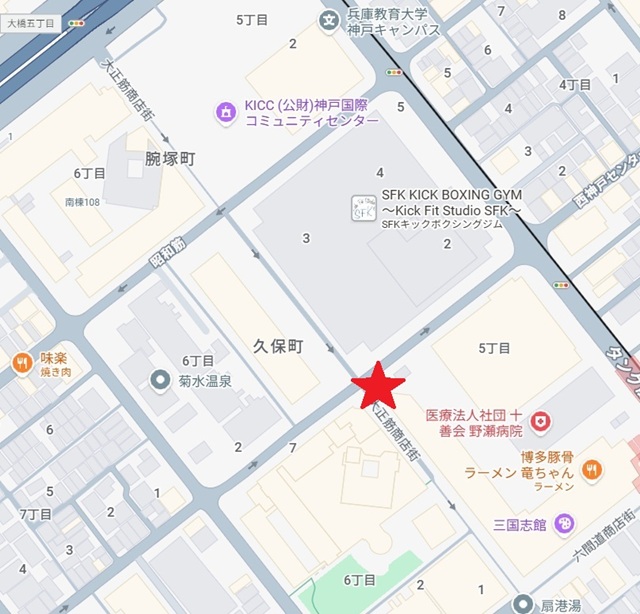 場所は東急プラザの敷地内で、鉄人広場の南側にある新長田一番街の入口付近。