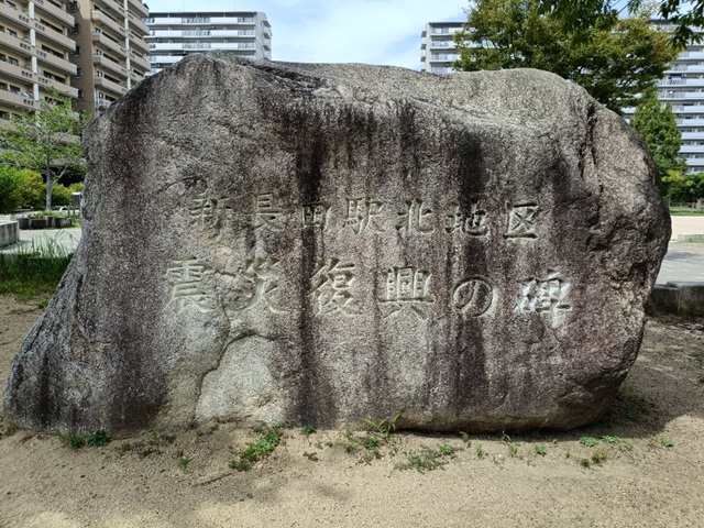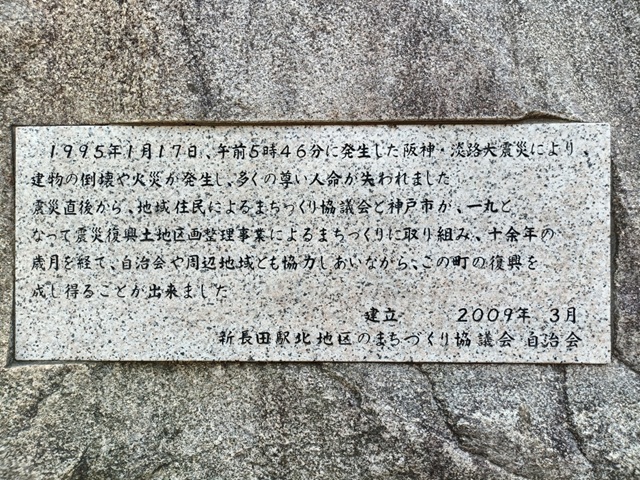 水笠通公園内の南側にある、新長田駅北地区震災復興の碑。