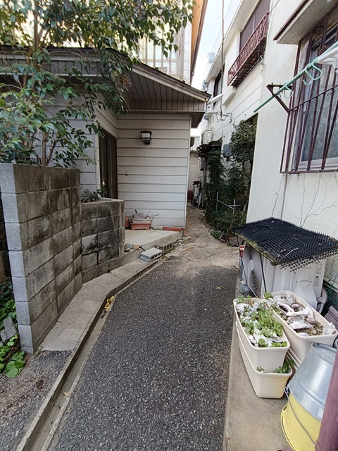 アグロガーデン沿いに南下して突き当りを左折し、アグロガーデンの駐車場出入口を過ぎたら都会秘境地の入口。
