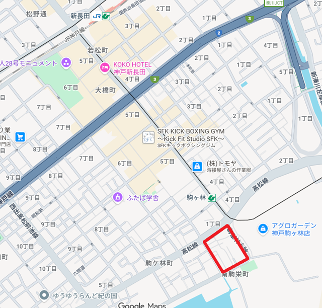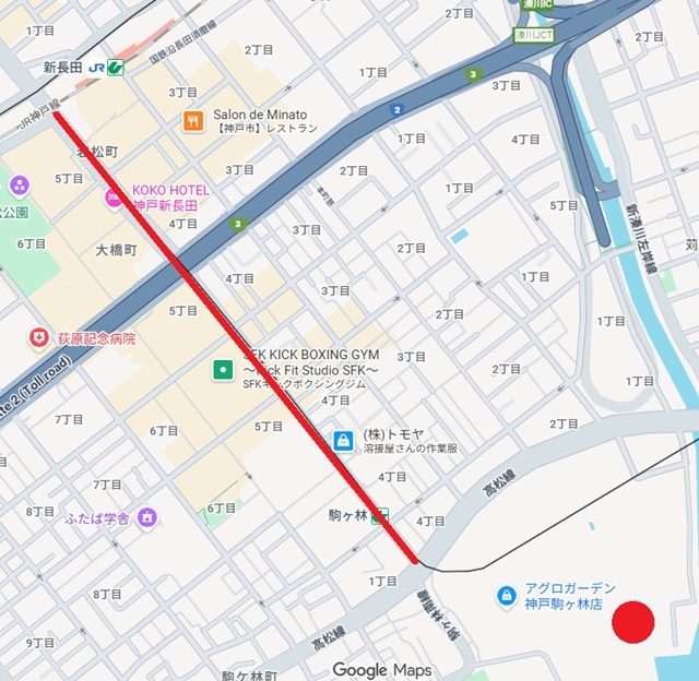 場所は、JR新長田駅から西側(鷹取駅側)へ3つめの高架下道路。