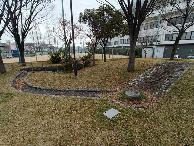 グランドが併設されているが、グランド以外は木が多く広場と言える場所はない。