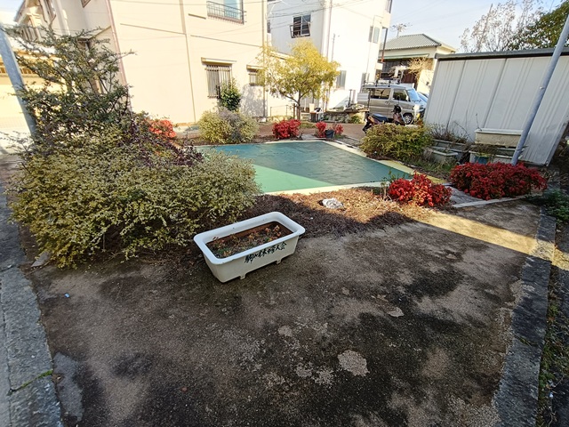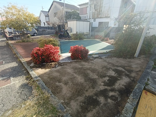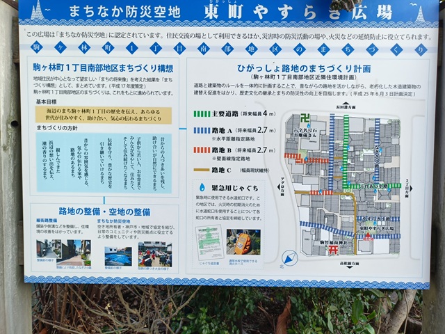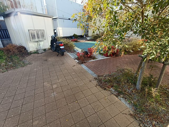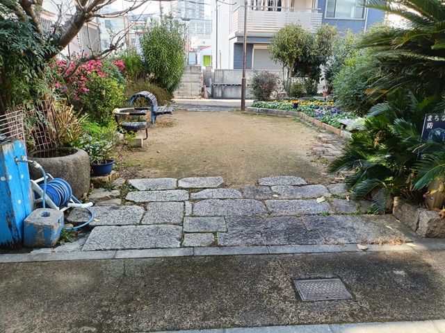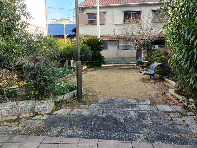 駒ヶ林のディープなエリアにある、狭い路地に挟まれた穴場的な広場。