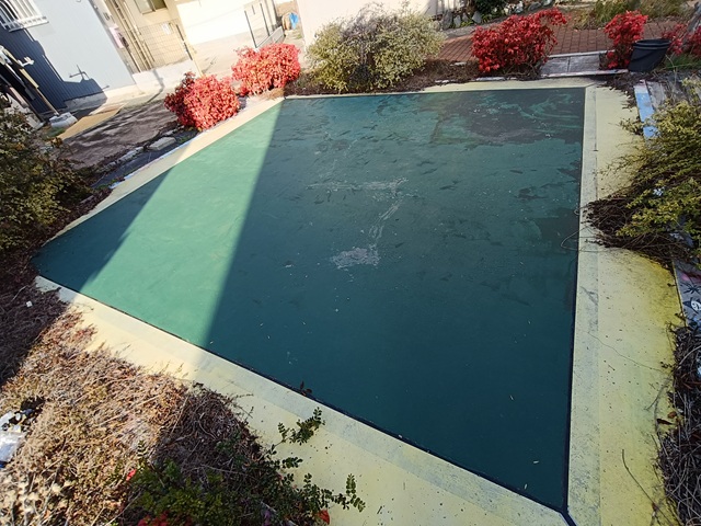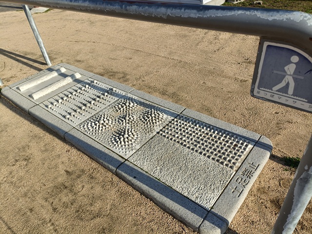 砂地広場と石タイルエリアの間に段差があるので、石タイルエリアに砂が舞い込みにくい。